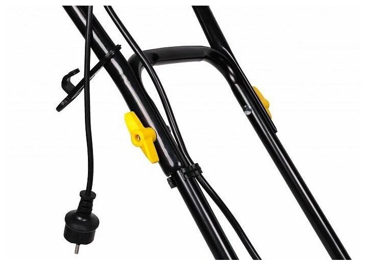 Культиватор - 1 шт. Руководство по эксплуатации - 1 шт. Колесо с декоративным колпаком - 2 комплекта Рукоятка рабочая верхняя часть - 1 шт. Рукоятка рабочая нижняя часть - 1 шт. Держатель кабеля удлинителя - 1 шт. Фиксатор кабеля включения - 2 шт. Гайка барашковая с винтом - 4 комплекта |