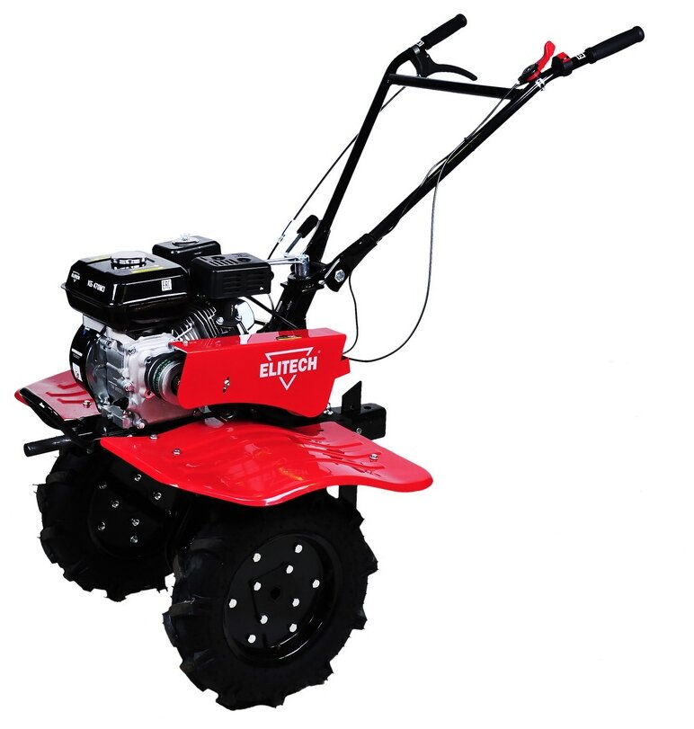 мотоблок, фрезы (в разобранном виде) (комплект), ручка, сошник, рычаг коробки передач, рукоятка управления, фиксатор рукоятки управления, кронштейн сошника, рычаг сцепления / дроссельной заслонки / выключатель зажигания, крылья защитные (2 шт.), кронштейн крыльев (2 шт.), крепеж (комплект), колеса пневматические 4.00-10" (2 шт.), вал для навесного оборудования, руководство по эксплуатации |