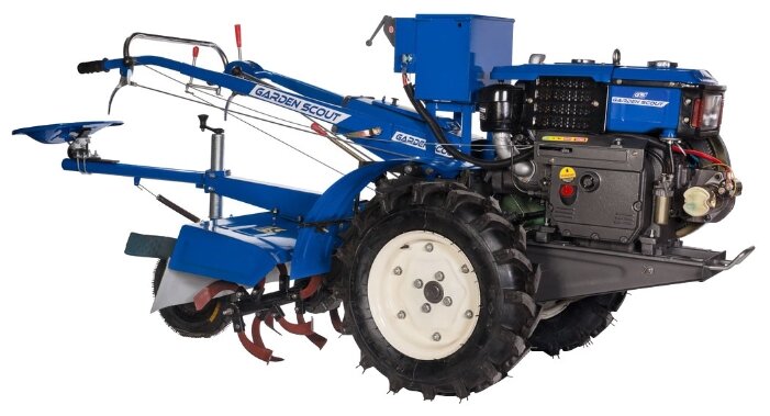 водяная система охлаждения, почвофреза, плуг однокорпусный на регулируемой сцепке, аккумулятор 60 А, адаптер - сидение для работы с почвофрезой, рукоятка ручного старта двигателя |